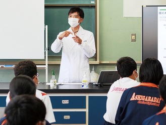 同校では同社から寄付されたアルコールクロス「ハイドロエージープラス」を日々、除菌に利用している。授業は、2年生の理科を担当する西村絵里香教諭が同製品の特徴でもある銀イオンの有効性を学ぶことを通して、生徒たちに理科に興味を持ってもらおうと同社に協力を依頼し実現したもの。