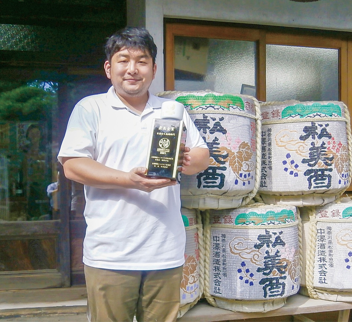 中沢酒造(株)の「松美酉」は、昔ながらの日本酒で、のんびり晩酌を楽しみたい人に向いている。「日本酒を嗜む方向けで常温から温めて飲むのが一番美味しい」と11代目の鍵和田亮さん。受賞について「とても嬉しい、今後の励みにもなります」と喜んでいる。