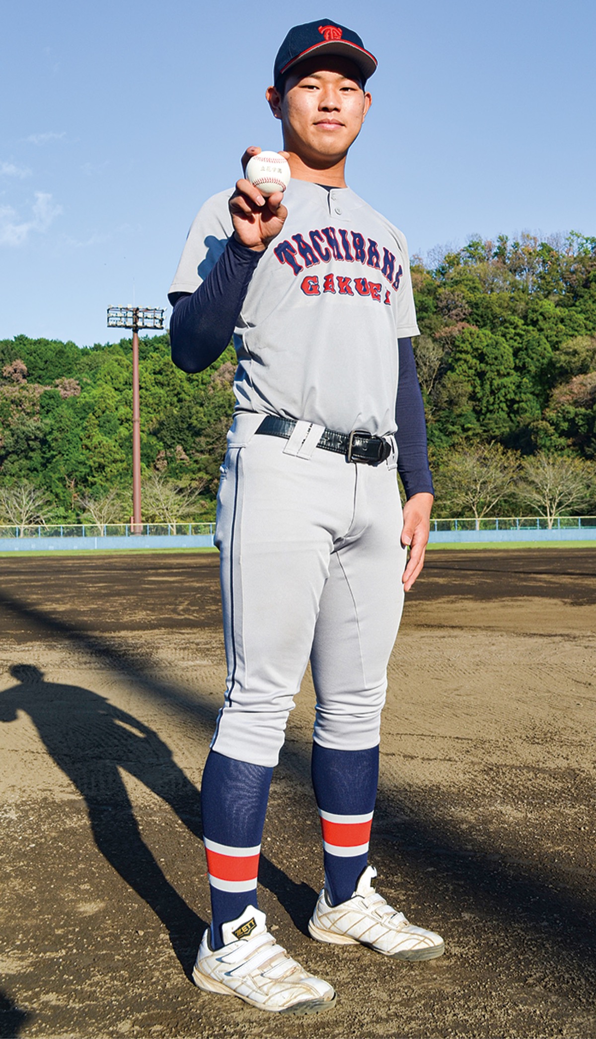 永島田さんは相模原市出身。2歳上の兄の影響で野球を始め、中学時はキャッチャーだった。立花学園高校入学後の1年秋、志賀正啓監督から肩の強さと投球フォームの良さを買われ、キャッチャーから投手へと転向することになったが「チームに貢献できるのであれば、ポジションは問いませんでした」と振り返る。180センチ体重85キロの恵まれた体格に加え、持ち前の研究熱心な性格も相まって転向直後の1年時終わりに135キロ前後だった球速は、半年後には143キロまでアップ。さらに3年生になると最速150キロをマークする速球投手へと成長を遂げた。