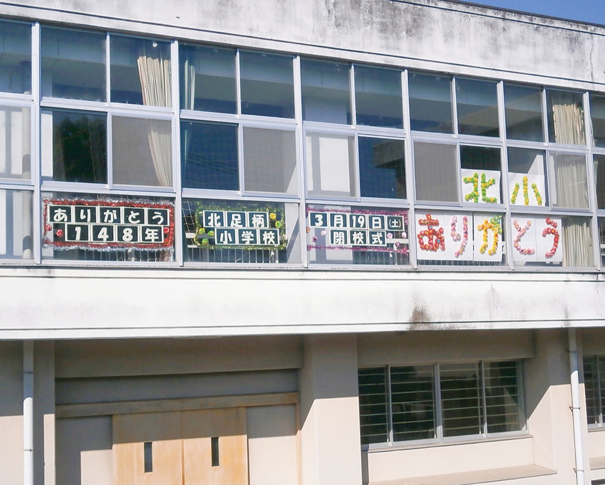 2022年3月に閉校する南足柄市立北足柄小学校の校舎窓などに、教諭が作った「ありがとう」の言葉が掲げられている。同校によると、感謝の気持ちを伝えようと10月に設置したという。また、校舎内では、地域の人から寄せられた写真などを展示しているという。「これまでの学校の歴史や活動を児童たちに知ってもらい記憶に刻んでもらえたら」と同校の教諭は話している。