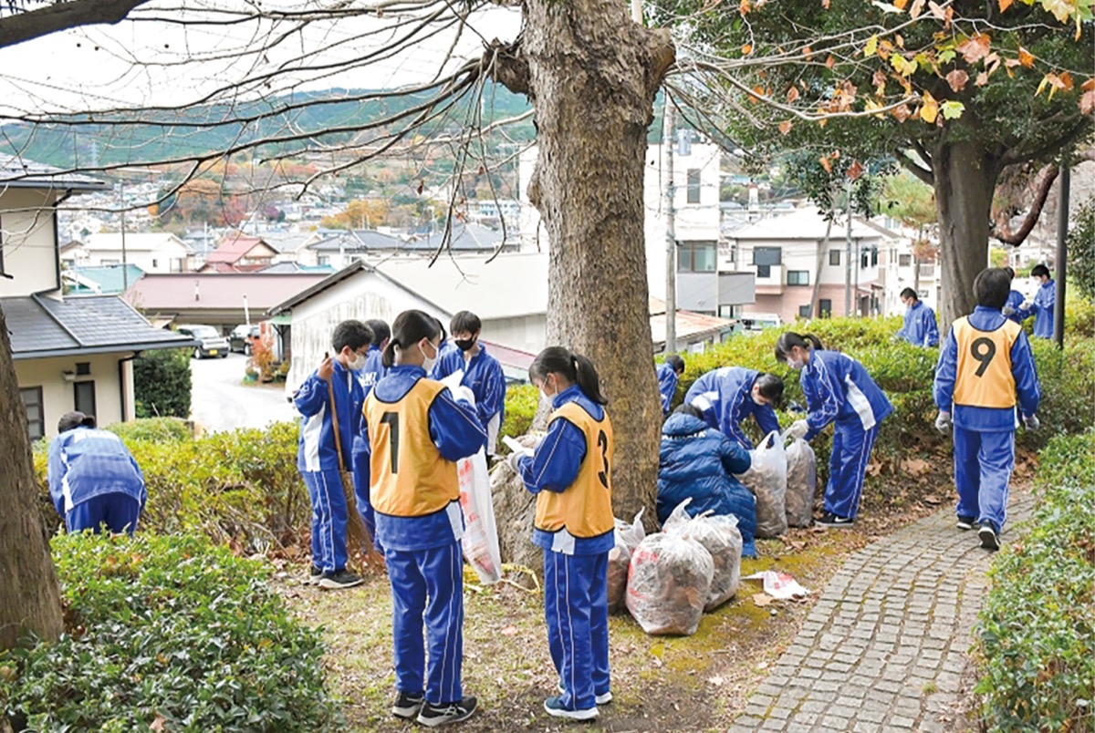 南足柄中学校の生徒と教職員合わせ約250人が12月7日、「ゴミゼロプロジェクト」と題し学校周辺の美化清掃に取り組んだ。