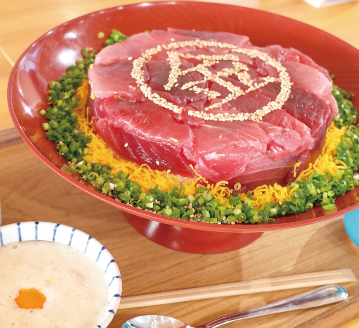 道の駅で提供されているのは「金太郎はっけよい!ねばとろ相撲丼ぶり」(税込3780円)。1kgのご飯にミナミマグロ250gを敷き詰めたひと品で総重量は1・6kg。地元の自然薯とろろ汁300gがセットで「味変」しながら楽しめる。一方、ユネッサンでの提供品は「まさかり担いだ金時山〜冬景色Ver〜」(同)。コーヒーピラフ1kgにまさかり型の黒豚トマホーク約500gが乗り総重量は1・5kgだ。