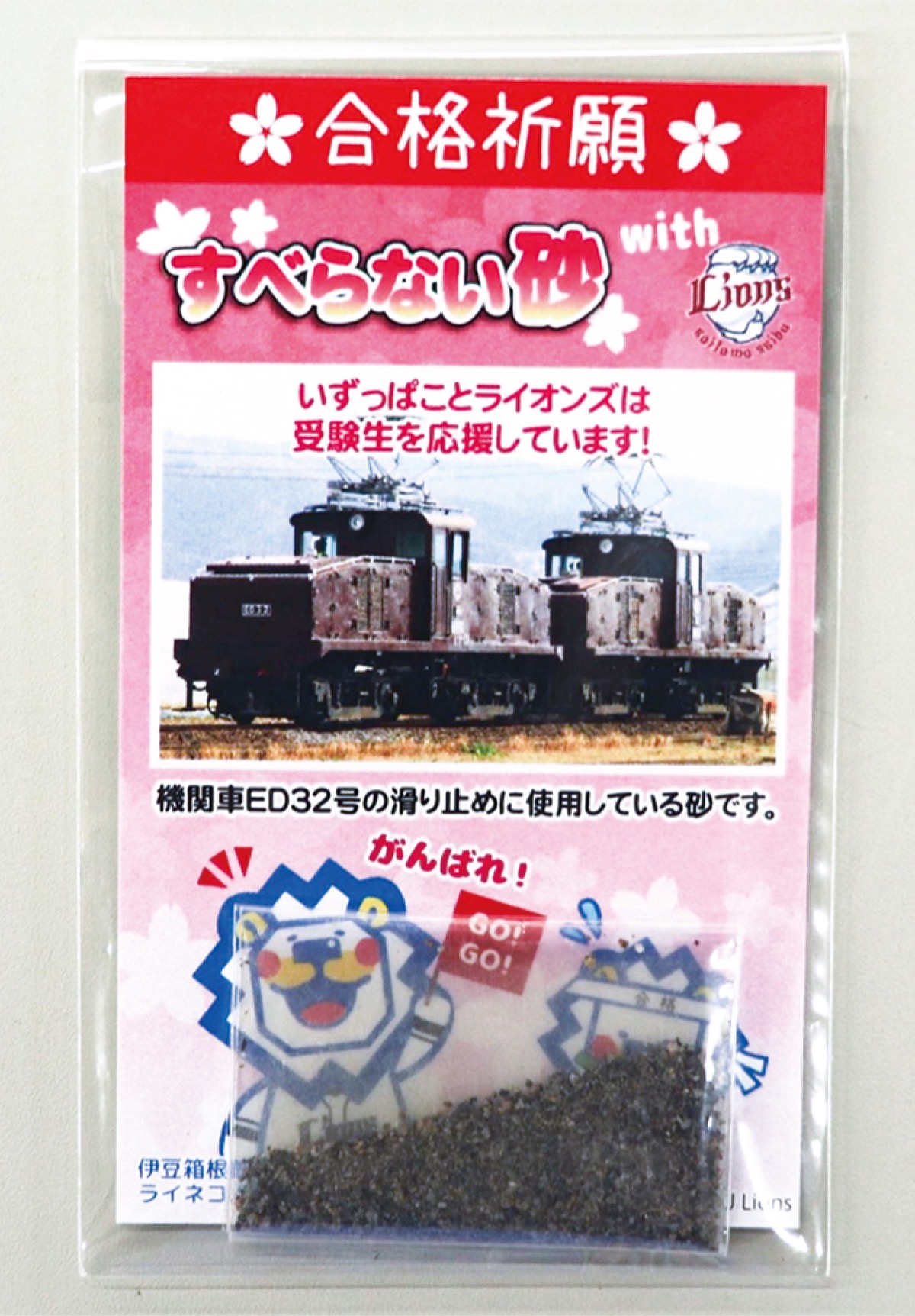 伊豆箱根鉄道株式会社は受験生応援を目的に、同社の機関車ED32号に使用している「すべらない砂」を1月22日(土)、合格お守りとして大雄山駅改札前で午前10時から無料配布する。1人1個。先着100個。