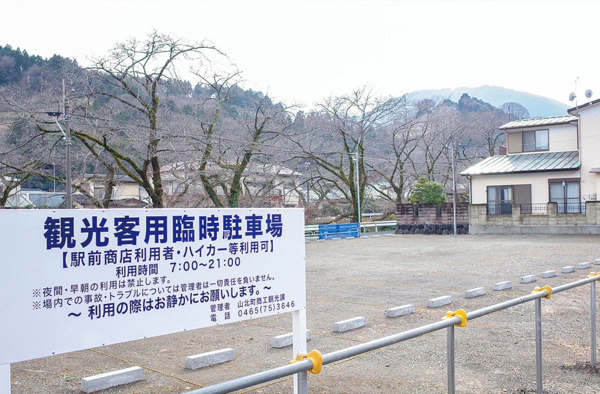 山北町は2月10日、山北駅前商店街の利用者やハイカーなどの観光客向けの臨時駐車場を山北体育館跡地(山北町山北2594の1)に開設した=写真。