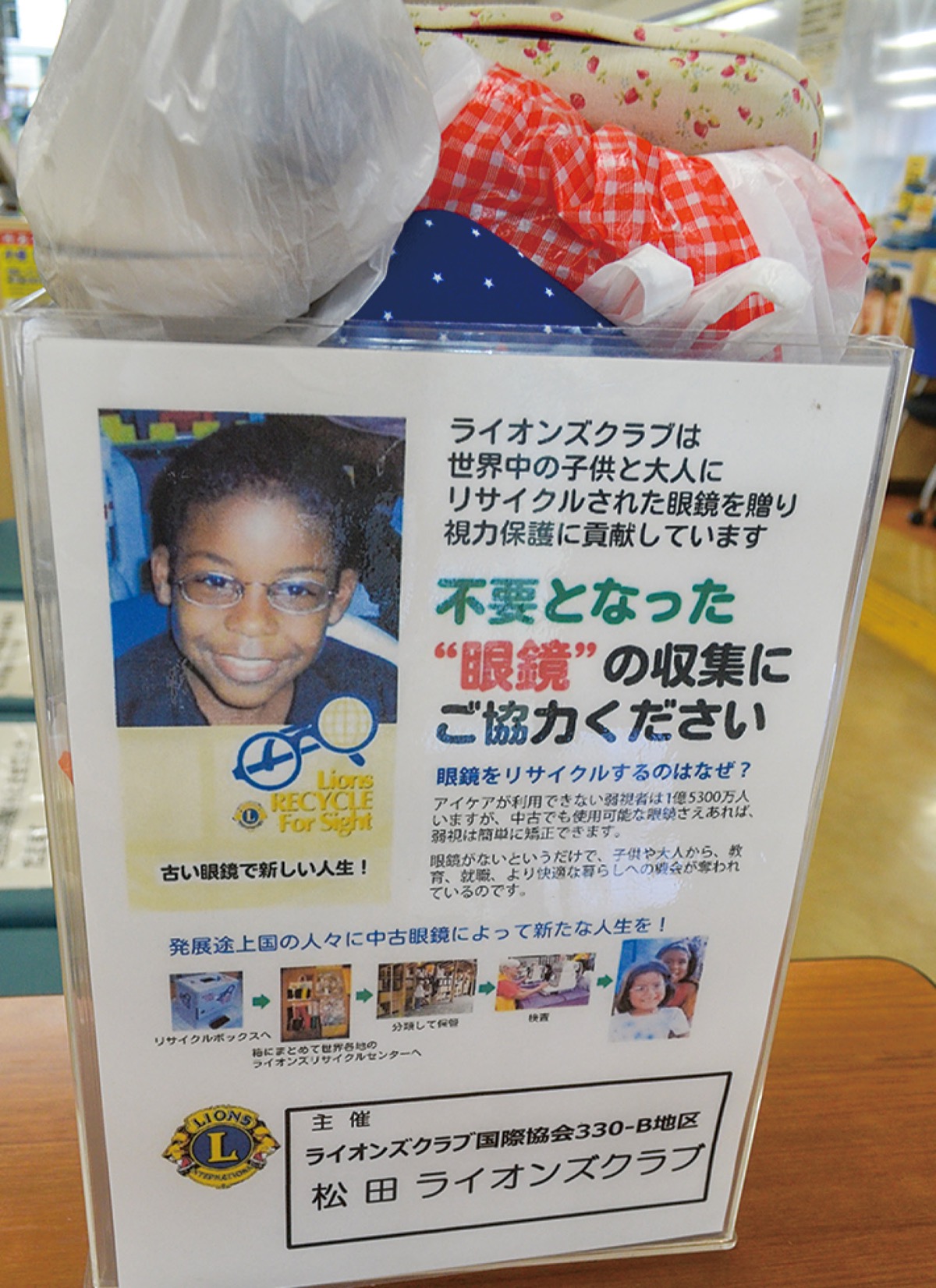 地域で奉仕活動を展開している松田ライオンズクラブ(福田弘文会長)は大井町、松田町、開成町の各役場に不要になった眼鏡等の回収ボックスを設置している。