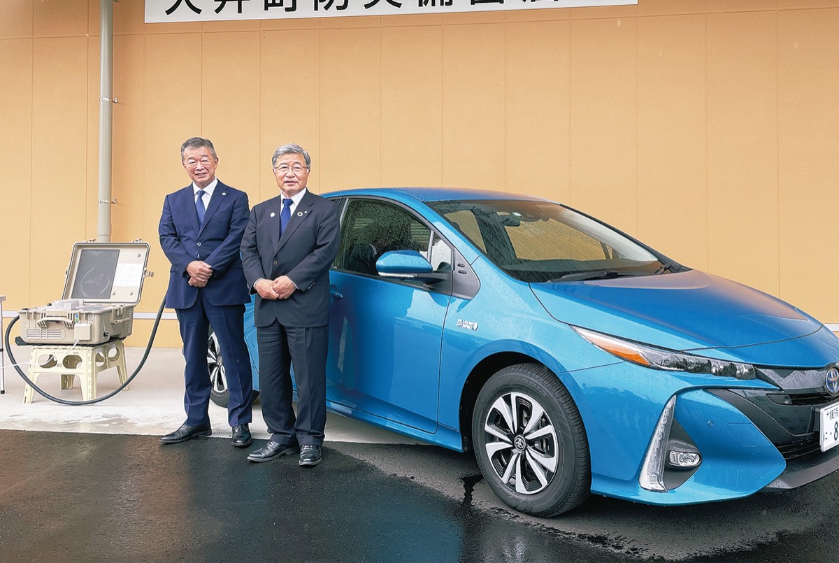 調印式で町は、有事の備えには蓄電能力に優れ、機動性と供給機能を持つ給電車両が望ましいとして「町内に店舗を構える神奈川トヨタに相談した」と協定締結の経緯を説明した。