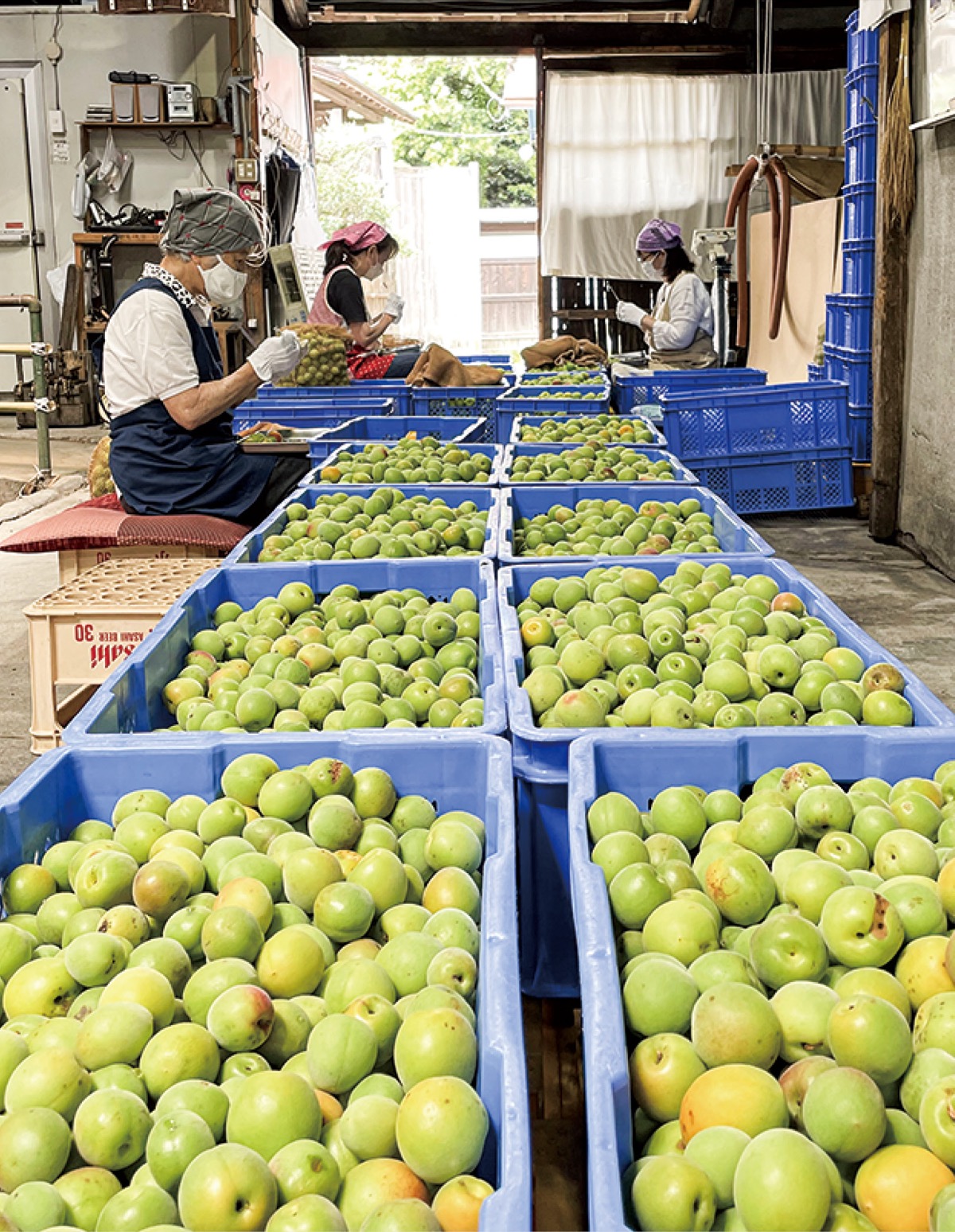 作業は10日間ほど行われ、同社では5トンの青梅を自社醸造の日本酒と氷砂糖で1年間漬け込んでから「曽我梅林の梅酒」として出荷する。スッキリとした味わいが特徴という。