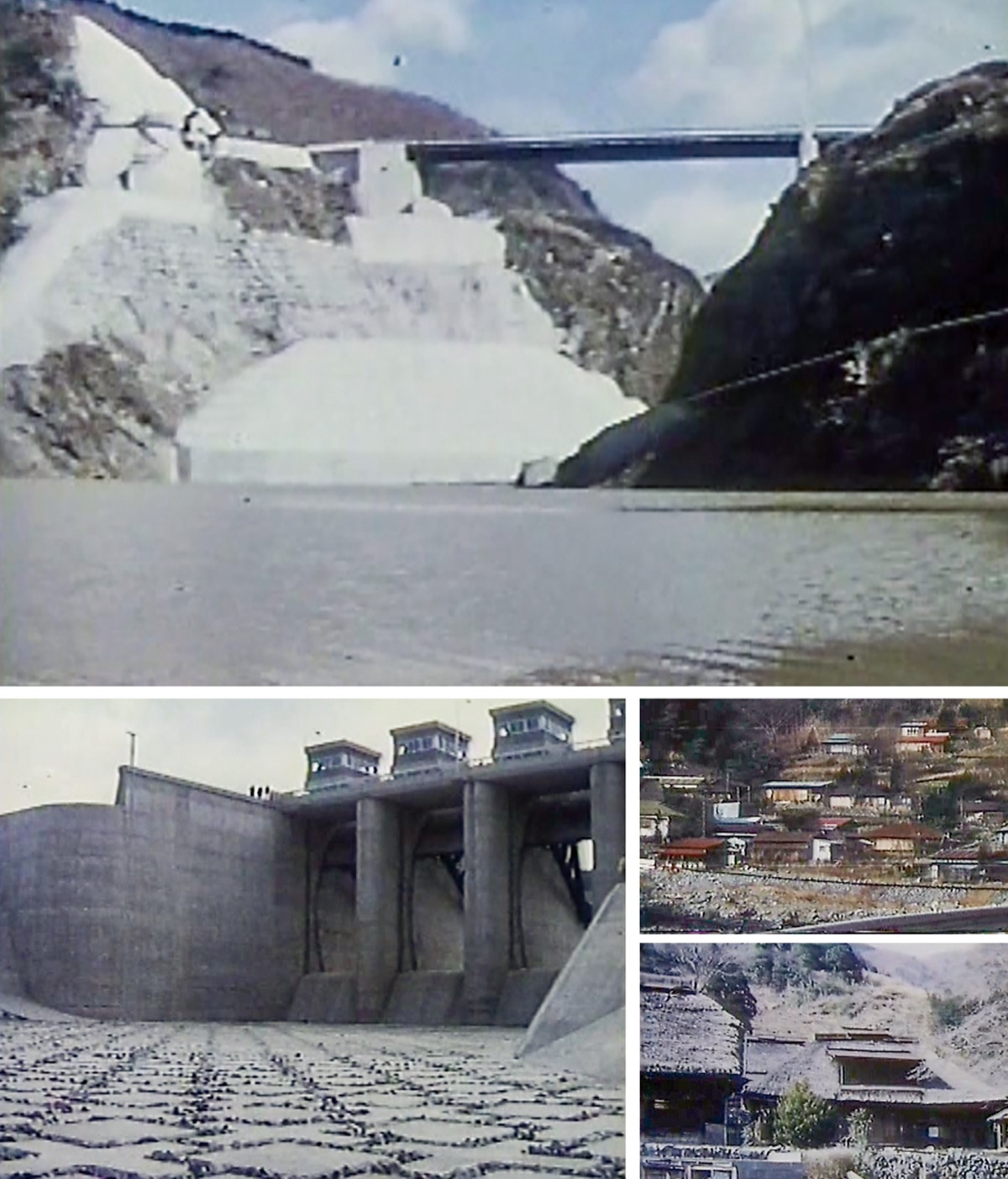 ダムの建設を知ったのはこの頃。車に機材を積んで山北に通うようになった。映像は引っ越してゆく人や抗議活動をする住民、工事現場でうなる重機や竣工式なども記録。湛水により湖底に沈む茅葺き屋根などの集落や、新しいダムのほとりで観光振興に取り組む人々も収めている。