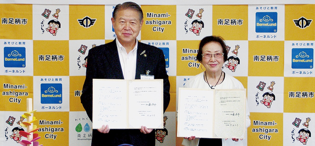 南足柄市はこのほど、「あそび」について総合的に取り組む株式会社ボーネルンド(東京都渋谷区、中西弘子代表取締役社長)との間で「南足柄市こどもの遊び場づくりパートナー協定」を締結した。同社とのパートナー協定締結は県内自治体では初めて。