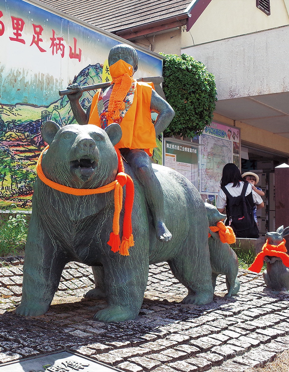 大雄山駅前にある金太郎像は、9月16日から22日まで金太郎とその仲間たちが「認知症サポーター養成講座」の修了者に贈られるオレンジリングにちなみ、オレンジ色の衣装をまとって活動をピーアールした。
