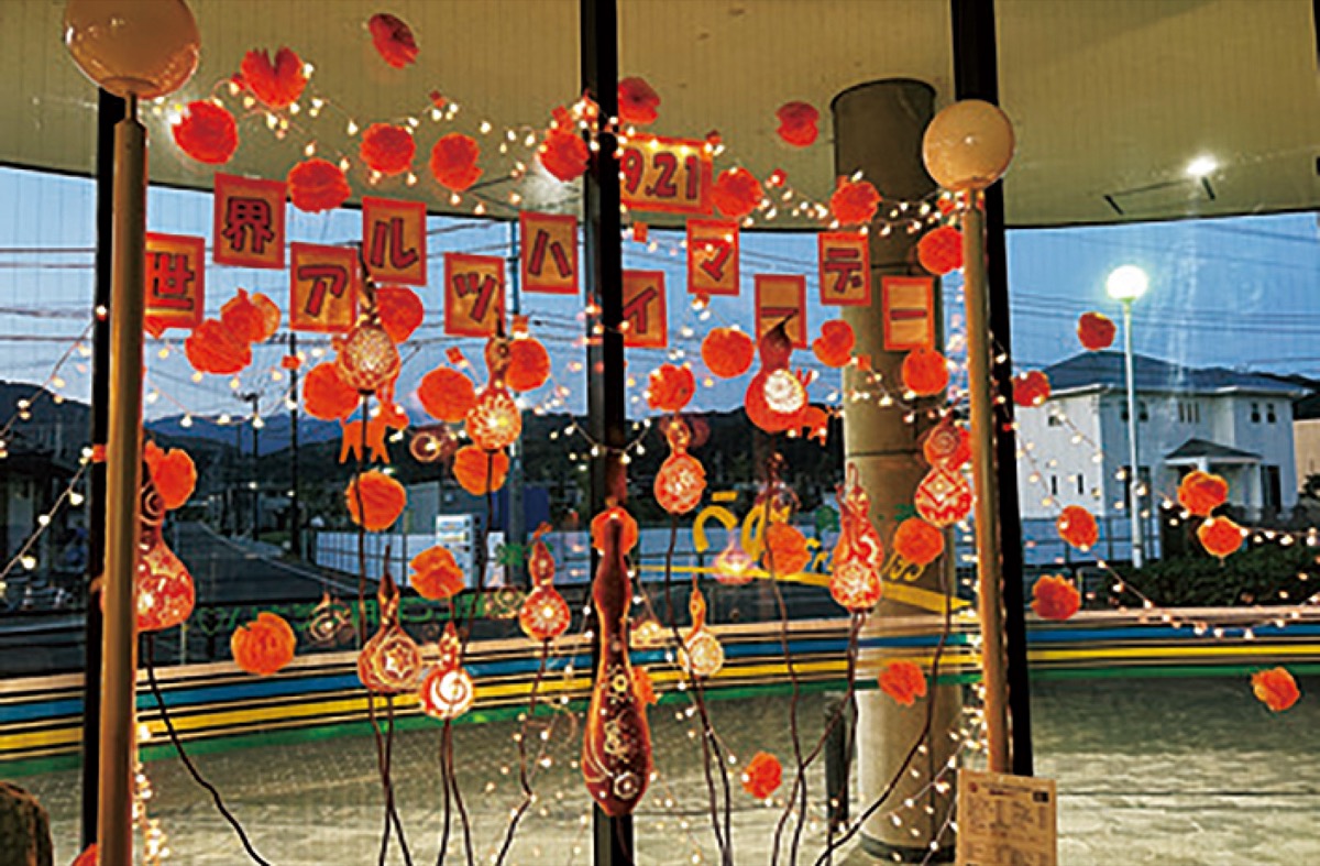 大井町では9月12日から22日まで町保健福祉センター内に、ひょうたんで制作したランプの装飾を行った。町福祉課によると、ひょうたんランプを制作したのは、二宮町で工房を運営するアーティストの向川康樹さん。町の担当者が、向川さんに作品の展示を依頼したところ、快諾を得て実現したという。担当者は「来年以降もこの時期にひょうたんランプを展示するなどして、認知症への理解普及啓発を継続できれば」としている。