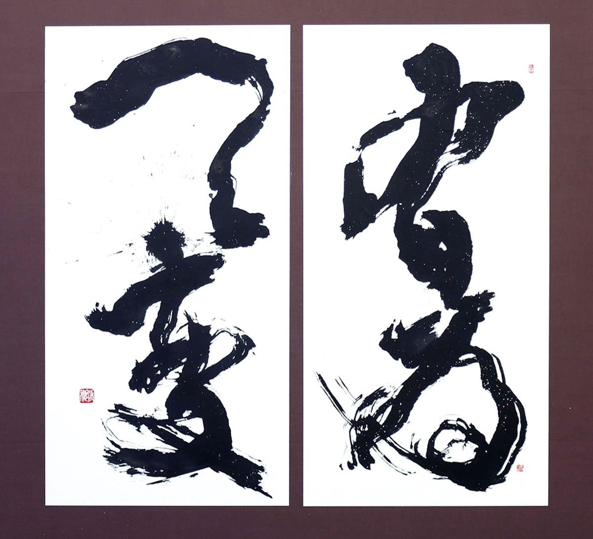 今回の個展では、貴布禰総本宮貴船神社(京都府)奉納作品『神水』、全紙6枚つぎの大作『書一途』などの最新作品、ハワイ州立大学収蔵作品『波』(※類似作品)、さらに「入門直後」という50年前の小学4年生から、中学、高校、専門学校、大学時代の作品など約30点を展示する。