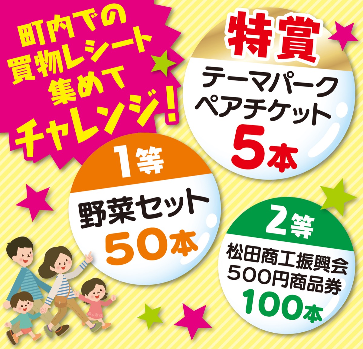 参加するには、11月19日(土)から26日(土)の期間に町内にある店舗で発行されたレシートを持参すること。2千円以上のレシート(複数枚の合算も可)で1人1回のみ抽選できる。