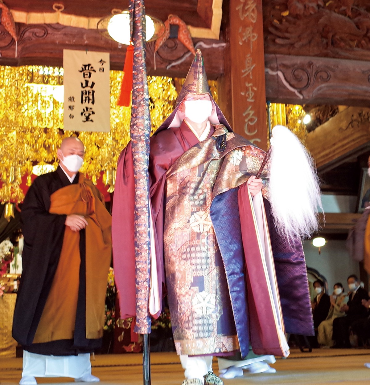 本堂に入る前には、増田山主が山門法語などを唱え、山主としてあいさつ。来場した多くの人たちが見守る中、赤い絨毯の上を進んで本堂に入った。