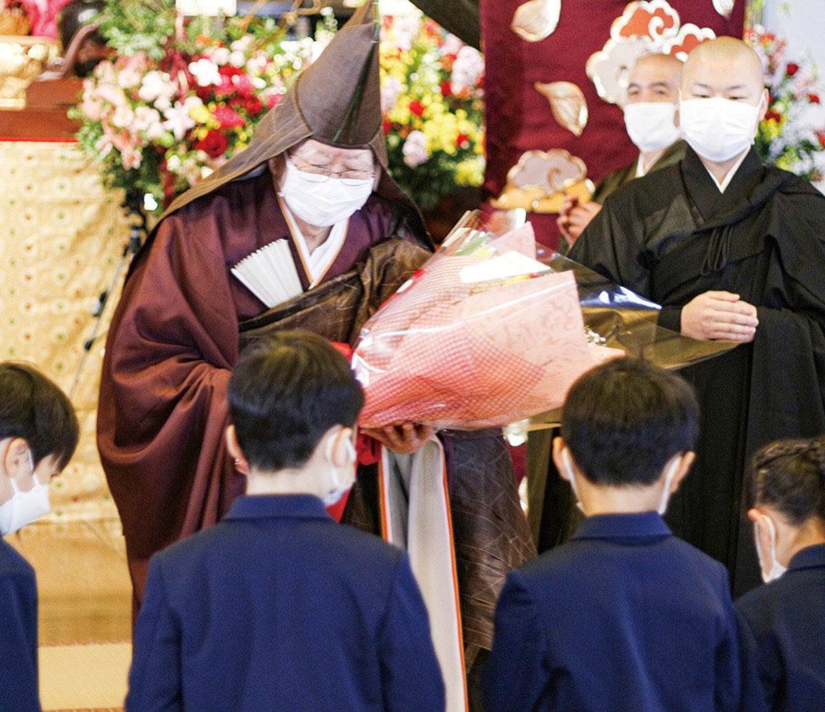 開山報恩諷経では、25年にわたり大雄山最乗寺の山主を務めた大本山總持寺の石附周行貫首が祝辞を述べ「1年前まで山主を務めたこの寺院に、大変立派な山主が就いたことをうれしく思います。多くの人のお力を賜り、寺院を守られていくことを祈念します」と語った。