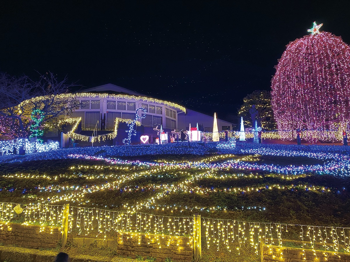 松田町西平畑公園(松田惣領2951)で第20回松田きらきらフェスタが開催されている=写真。園内が青、白、黄色など色とりどりのイルミネーション約18万球で彩られ、今年はリボンやツリーの形などが登場。幻想的な雰囲気が多くの人の目を楽しませている。