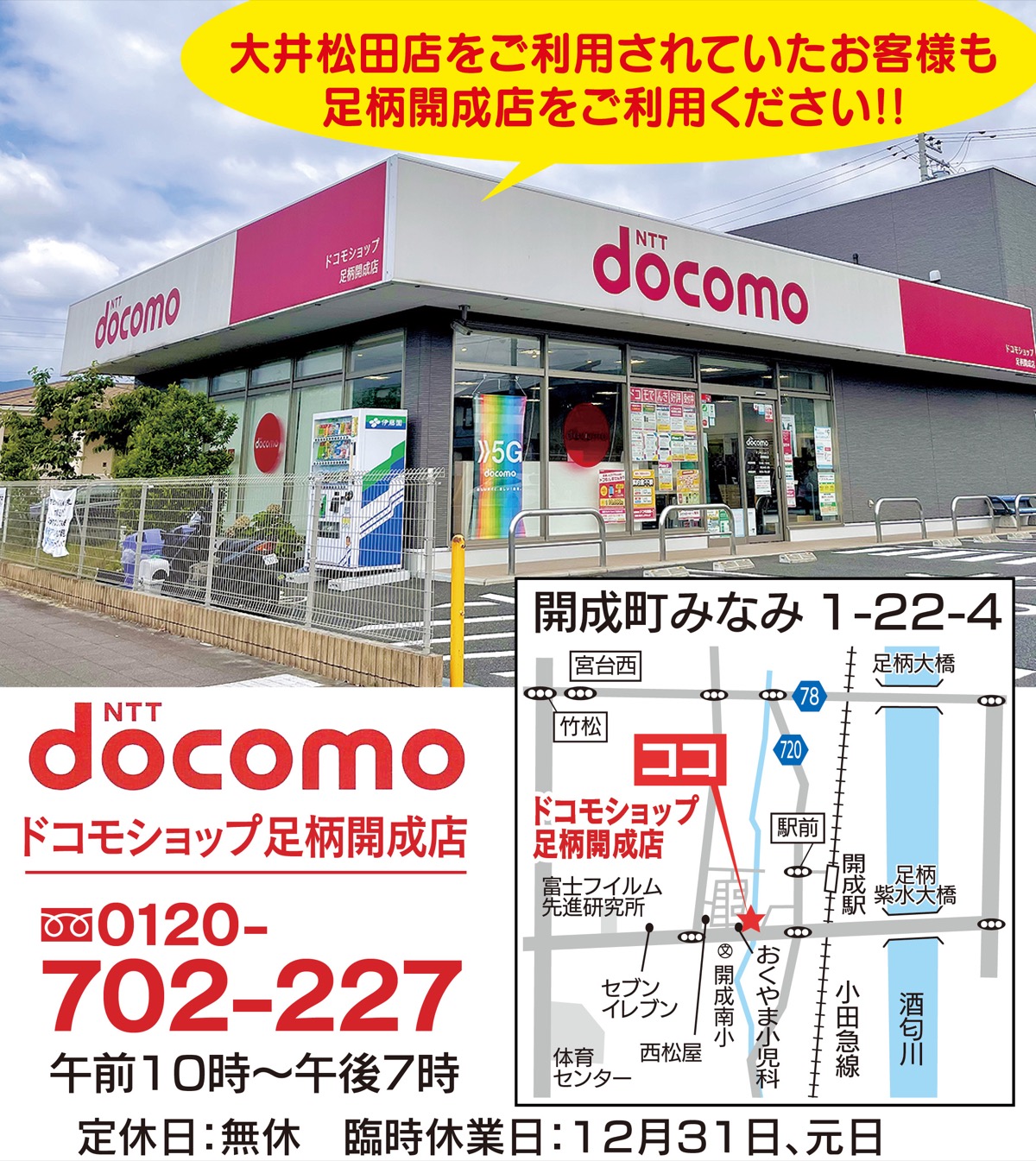 キッズからシニアまで「安心してスマートフォンを使いたい」という声に応えてくれるドコモショップ。地元では足柄開成店(開成町みなみ1の22の4)が機種交換から料金プランの相談、他社から乗り換えなどに対応してくれる。