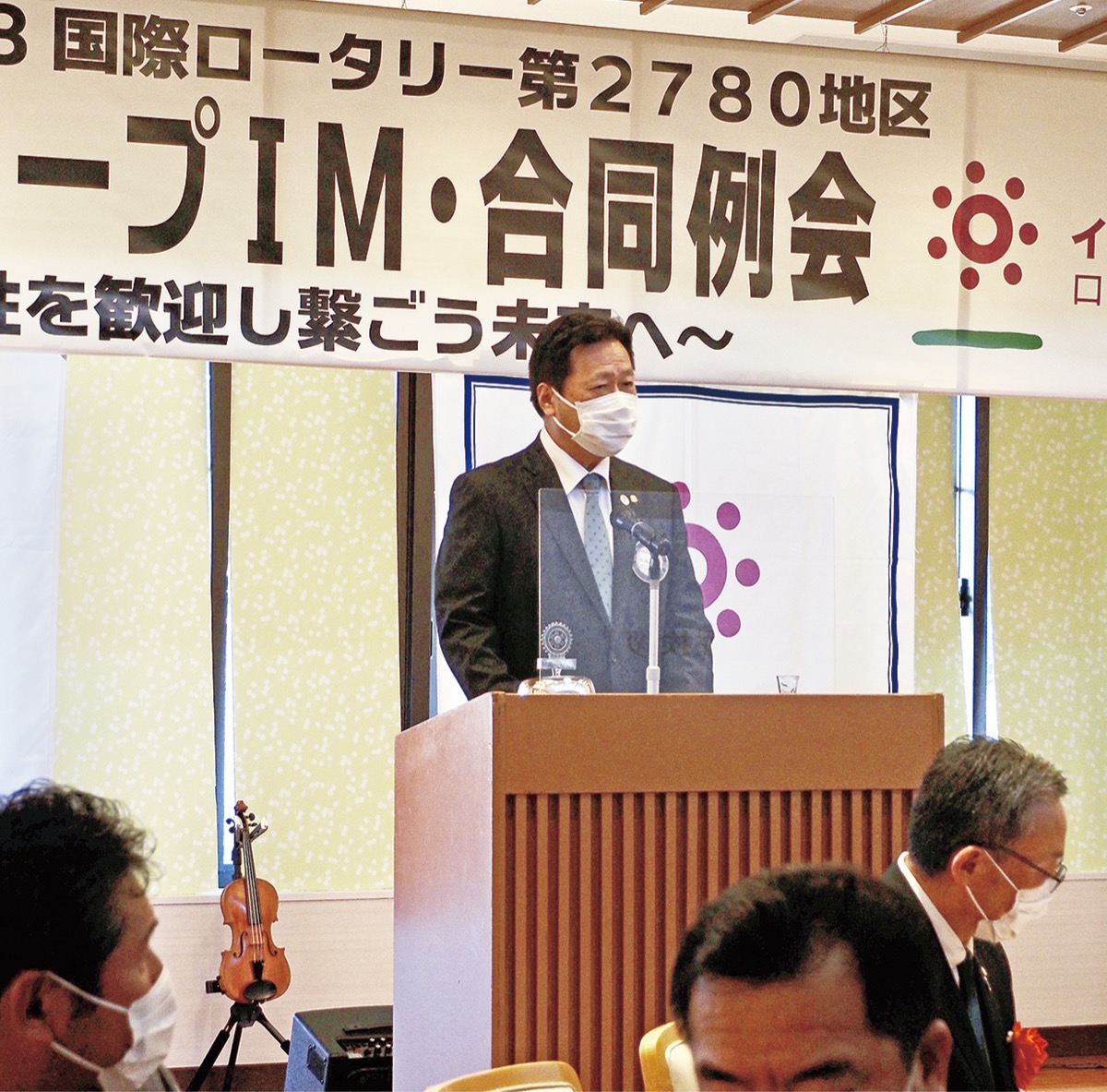 小田原城北ロータリークラブがホストを務めた今回は、地区内の会員151人が参加。小田原城の清掃活動の後、「多様性を歓迎し繋ごう未来へ」をテーマに、第1部は小田原城天守閣館長・諏訪間順氏を講師に小田原城と北条氏について学んだ。第2部では小田原市在住で東京パラリンピック閉会式でも演奏したバイオリニスト・式町水晶氏が登場し『イマジン』などを披露した。