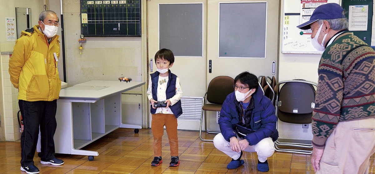 松田町の旧寄中学校校舎で2月26日、親子でトイドローンを使って楽しむイベントが企画された。同町の株式会社アッドプランが今年度、県の「地域活性化のための提案型事業」に提案し、採択されたもの。この日は11家族36人が参加した。