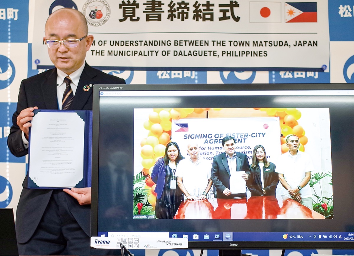 協定について本山博幸町長は「同社との連携の入口はALTの紹介になるが、人口減少時代の中にあり、今後は地域振興や町への人材派遣など様々な分野で交流を進めていきたいと考えている」と説明する。同社が幅広いネットワークを有するフィリピン共和国のダラグエテ市との交流推進の覚書にも、言語教育にとどまらず、観光やビジネス、文化交流でも関係強化につなげたいというねらいがある。
