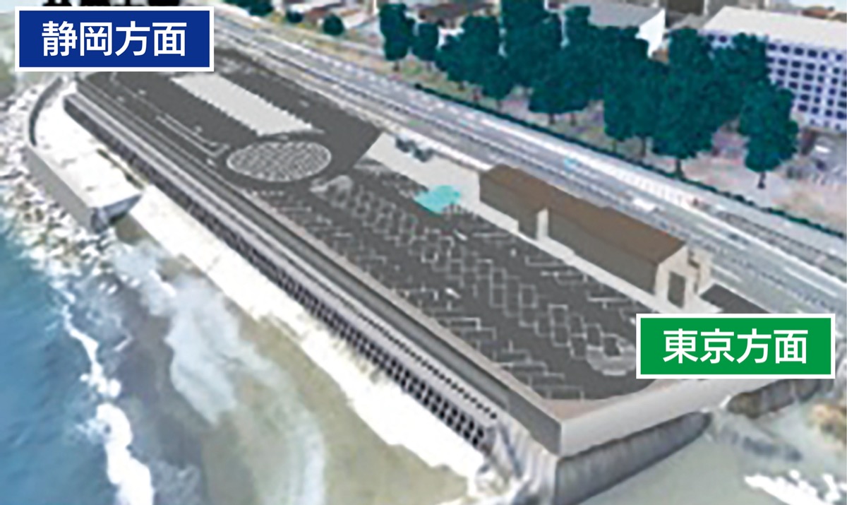 施設のレイアウトも見直され、トイレ棟などの建物はこれまでの海側から本線側(内陸側)に移動。今回の工事により、防災機能が以前より向上している。