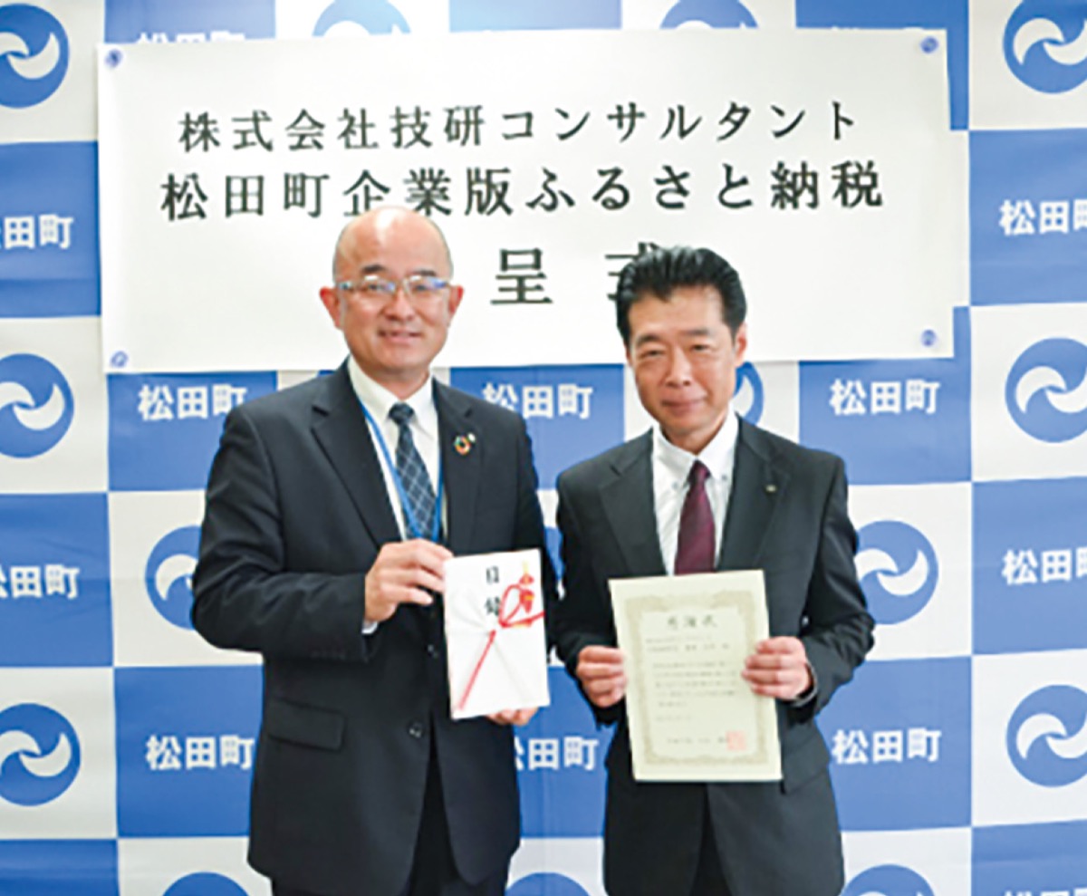 (株)技研コンサルタント(本社/横浜市)がこのほど、企業版ふるさと納税を活用し松田町に100万円寄付をした。
