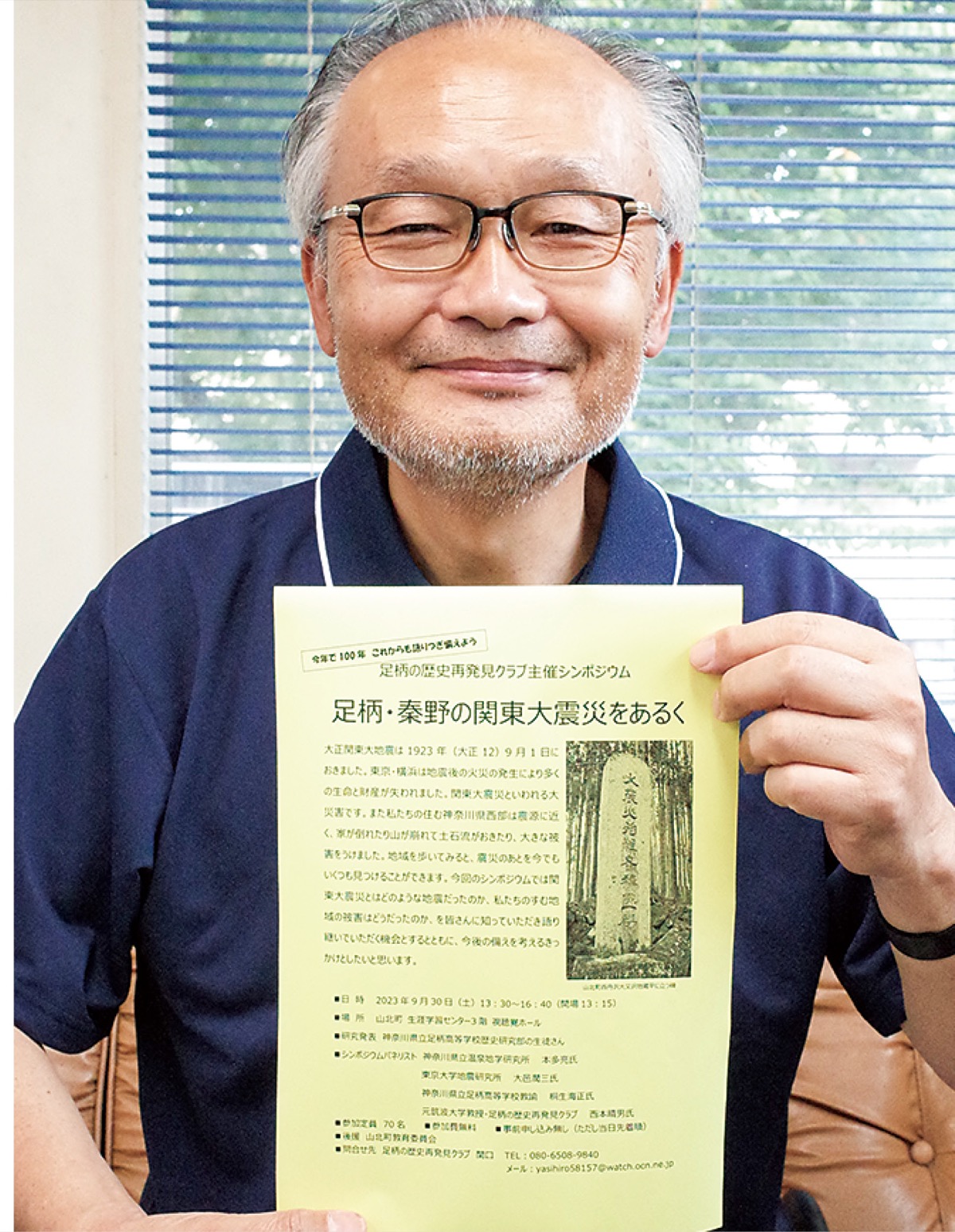 地域の災害と歴史を市民目線で見直し情報発信する団体「足柄の歴史再発見クラブ」(関口康弘会長)が9月30日(土)、山北町立生涯学習センターで関東大震災をテーマにしたシンポジウムを開く。午後1時半から4時40分。定員は当日先着順70人、参加費無料。