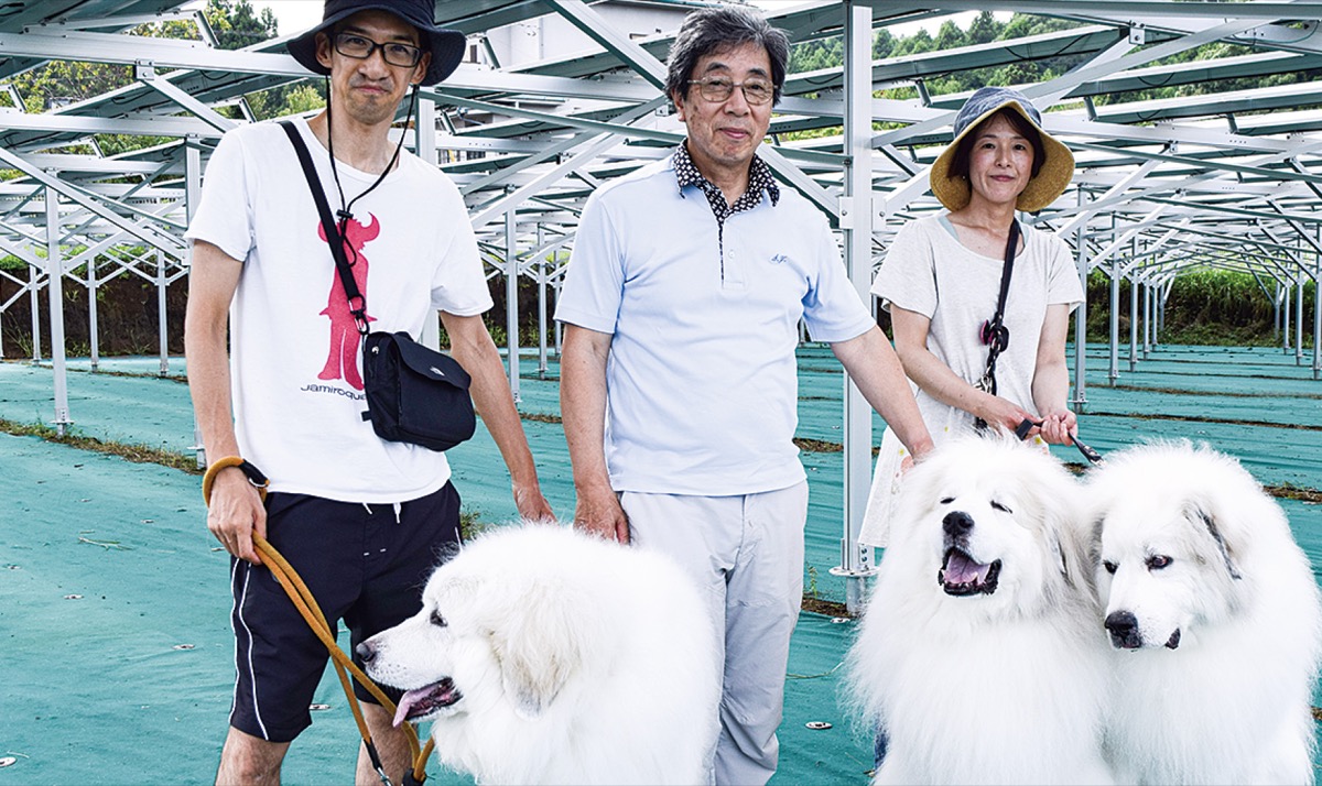 湯山さんは3年程前からグレートピレニーズという大型犬の飼い主たちが集う「村」づくりにも取り組んでいる。近隣にはすでに3家族が暮らしており、大型犬ならではの遊ぶ場所の確保や高齢になったときの散歩など心配ごとを共有している。湯山さんは「ワイナリーなら犬を連れて出勤できるし、フェンスの中で犬も動き回れる。ソーラーシェアリングのある新しいライフスタイルを模索したい」と話す。