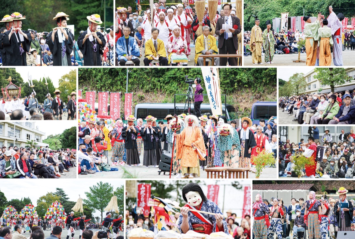 「お峰入り」とは山中で修業を行うことを意味し、修験道の儀礼が芸能化したもの5とされる。演技は8種類11演目あり、演じるのは約80名の男性。歌や踊りはすべて口伝えで伝承されてきた。近年は概ね5年ごとに公演を行っていたが、ユネスコへの登録を期待し、1年先送りされ、今年は6年ぶりの開催。