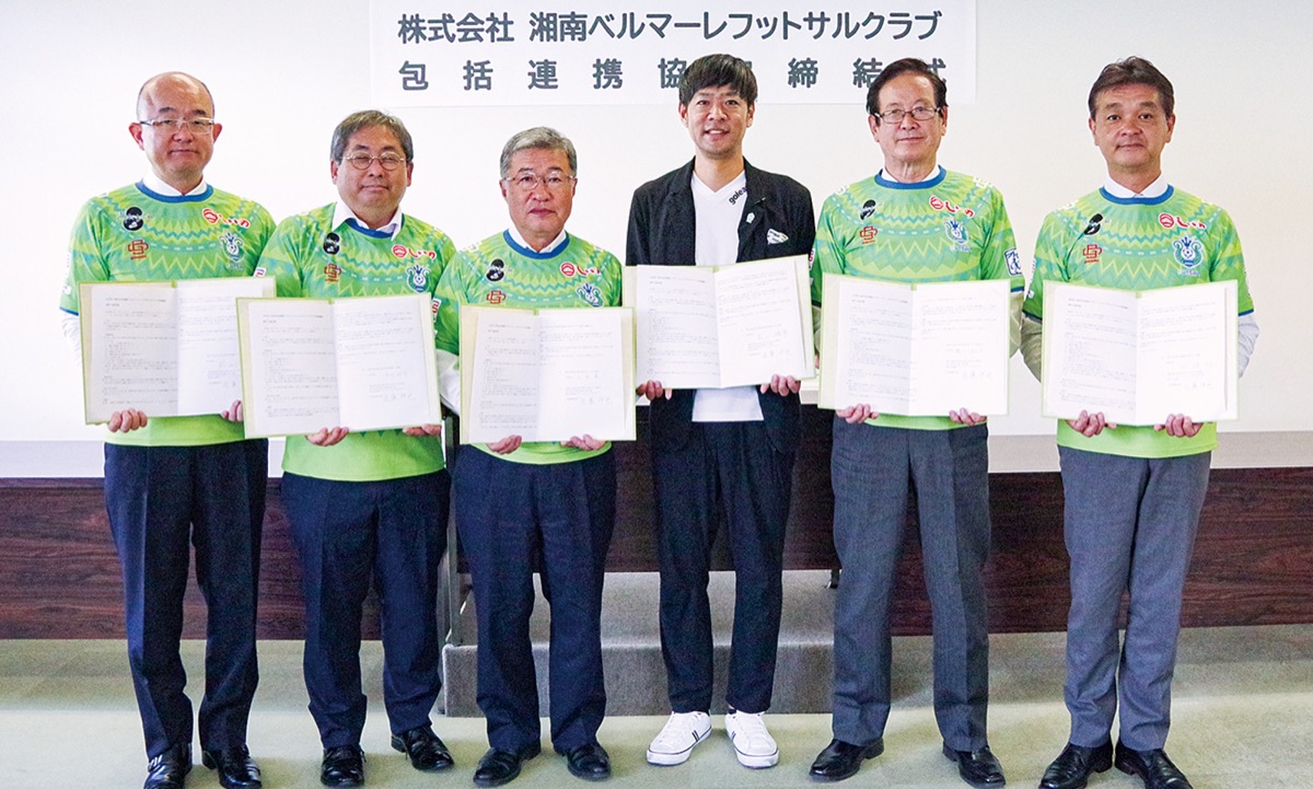 足柄上郡5町と(株)湘南ベルマーレフットサルクラブ(佐藤伸也代表取締役社長)が10月20日、南足柄市の足柄上衛生組合で地域課題の解決に取り組む包括連携協定を締結した。双方はスポーツや観光といった分野の振興を図りながら地域活性を進め、持続可能なまちづくりを進めていく。