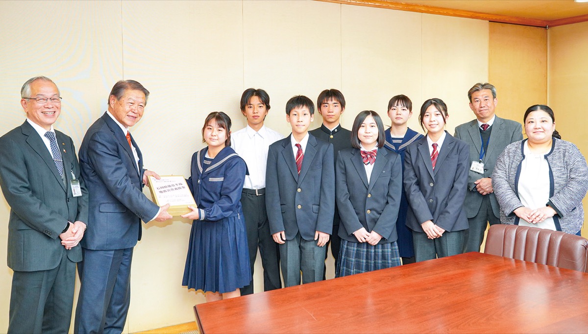 岡本中学校生徒会は1月11日、12日、15日に同校内で募金活動を実施。冬休み明け最初の登校日となった1月9日に生徒会メンバーで被災地支援の方法を検討し、募金に決めた。年始にもらったお年玉や家族の分の募金を持ってきた生徒などが見られたという。集まった14万8522円は15日、南足柄市役所で加藤修平市長に手渡した。