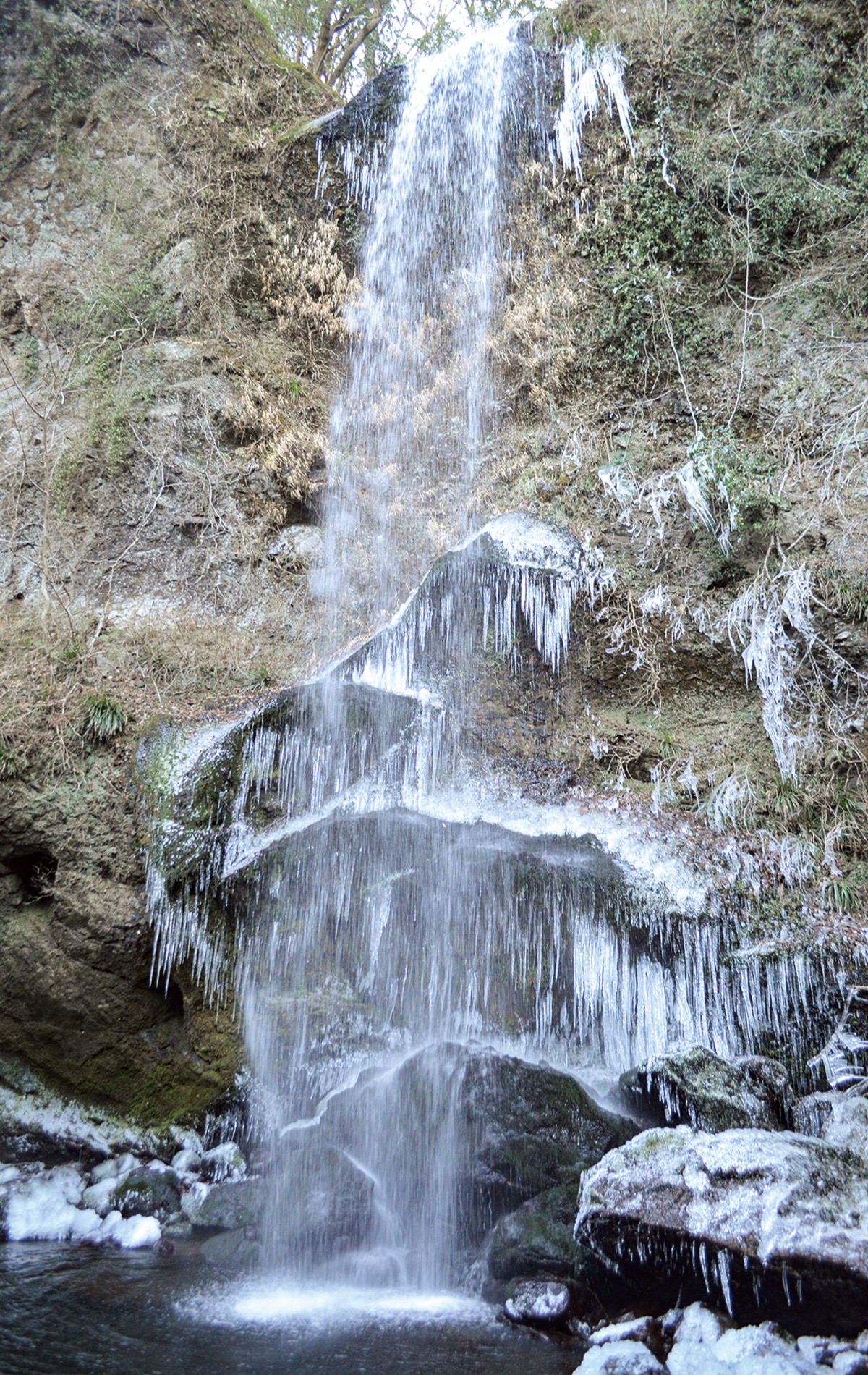 寒波が訪れるこの時季にだけ見られる造形美は「知る人ぞ知る足柄の絶景」として毎年観光客らが見物に訪れている。秦野市在住の男性(72)は「これまで10回以上は見に来ている。今年は暖冬の影響で氷が少ないが、干支の龍のように綺麗だった」と話した。