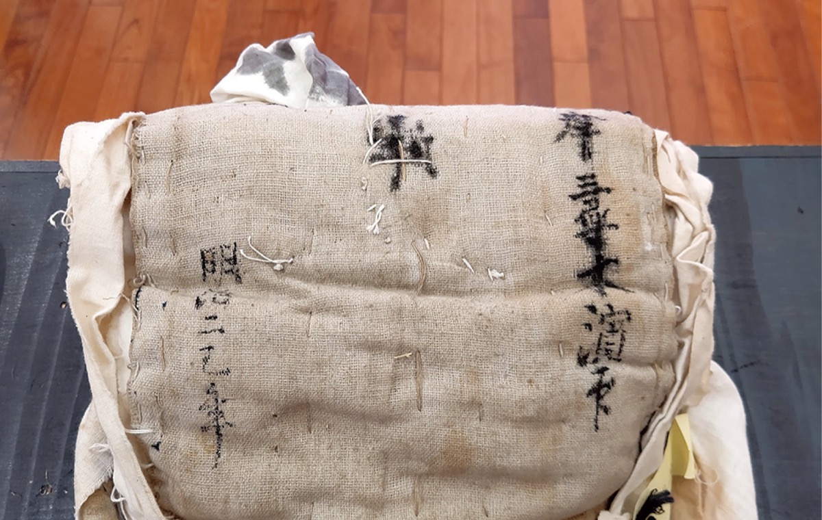 なお、私たちは、岸自治会の自治会長を務める野地泰次氏に自治会に人形芝居に関する資料が残っていないか聞き取りしたが、残念なことに資料は残っていなかった。そこで山北町文化財保護委員長である茂木哲夫氏の紹介で、向原に住む藤原巳鶴氏のお宅には、人形芝居で使ったと思しき古い羽織があると聞いた。しかし、藤原氏へ聞き取り調査をしたが、古い羽織は人形に着せるものではなさそうだと分かった。羽織には「林子連中」のような文字があるが、人形芝居で使ったものではなく役者が行う地芝居のものだと思われる。このことから人形芝居は向原に広まっていた確証はないと考えた。