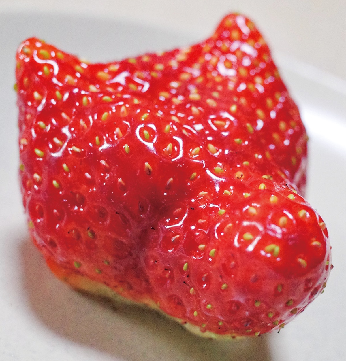 変わったカタチの野菜や果物のニュースは結構あると思いますが、時に「ちょっと無理筋では」と思うこともしばしば。しかし、これはいかがでしょう、記者が見つけたイチゴのひと粒です。
