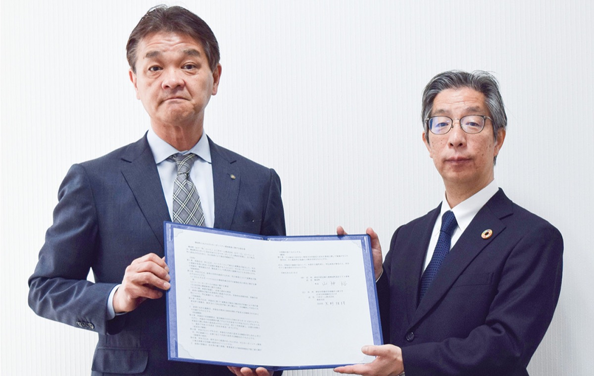 山神裕町長は「子育て世代を中心に社会増が続いている中で、町民の環境意識を高めたい」。また矢野雅朗湘南支店長は「ゼロエネルギーハウス(ZEH)の普及等を通じて力になりたい」とそれぞれ話した。