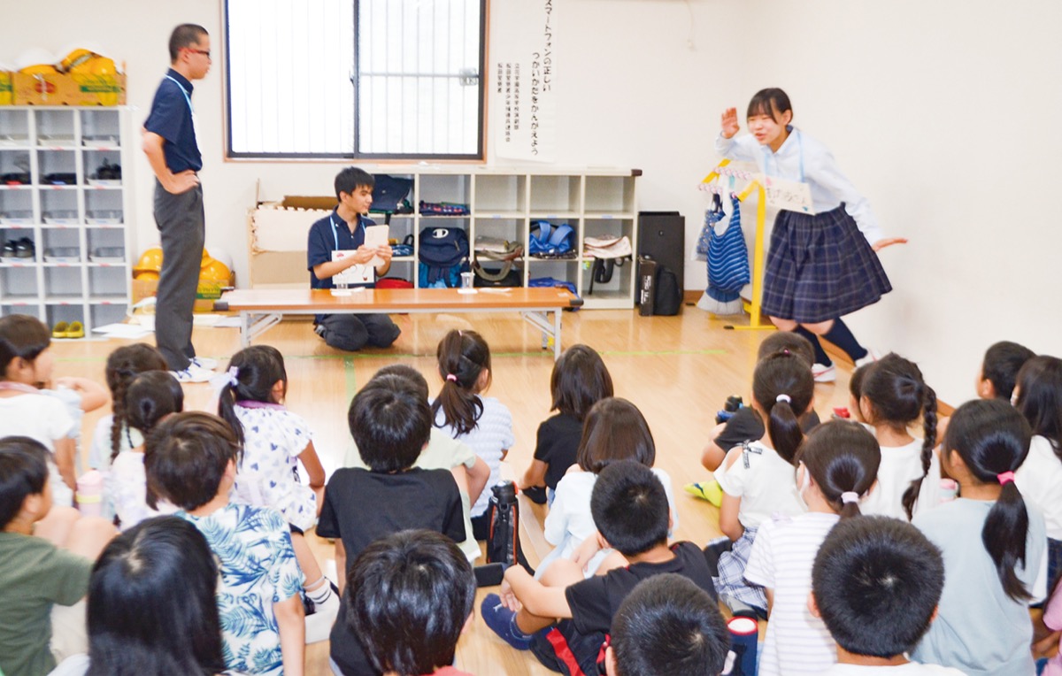 立花学園高等学校の演劇部の生徒が7月30日、南足柄市立向田小学校区の放課後児童クラブで、インターネット安全教室を開催した。