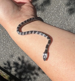 夜行性のため、目撃情報が少ないことから「幻のヘビ」といわれるシロマダラヘビが9月3日、中川温泉の信玄館敷地内(山北町中川577の6)で発見された。