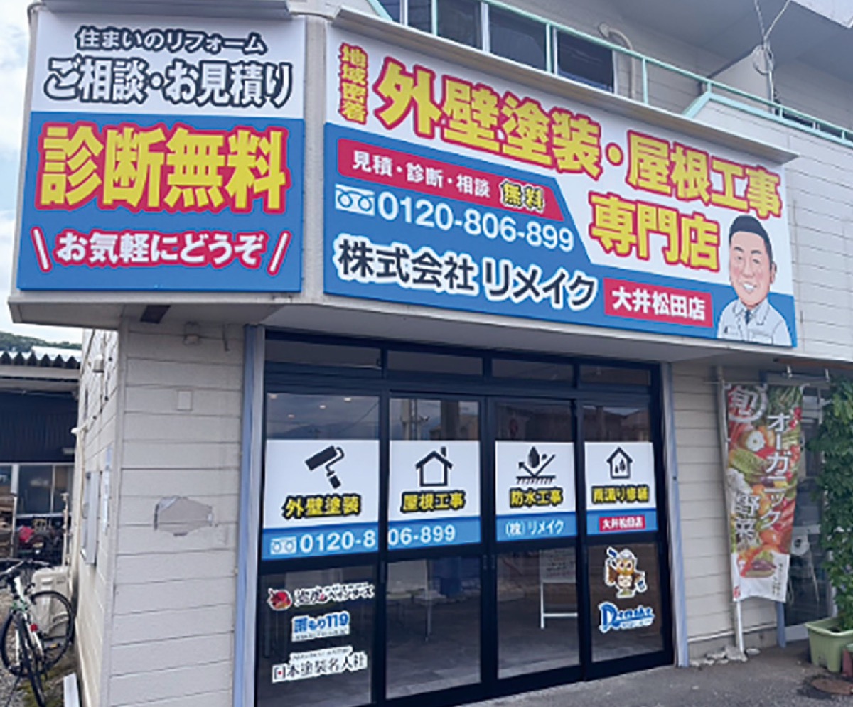 秦野市で屋根や外壁の塗装・防水工事を手掛ける職人会社(株)リメイク(小泉允人(まさひと)社長・一級塗装技能士)。塗装専門店ならではの質の高い工事が口コミを呼び、4千棟以上を手掛ける同社が8月1日、「(株)リメイク大井松田店」をオープンさせた。