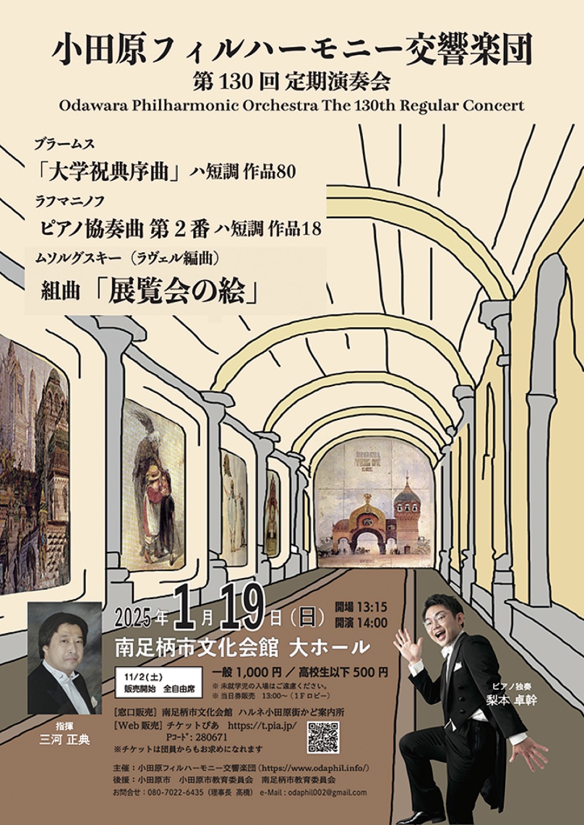 当日は、ブラームスの「大学祝典序曲」、ラフマニノフの「ピアノ協奏曲第2番」などを演奏。チケットは一般席1千円、高校生以下500円(未就学児入場不可)。同会館窓口ほかで販売(当日券あり)。(問)高橋さん【電話】080・7022・6435