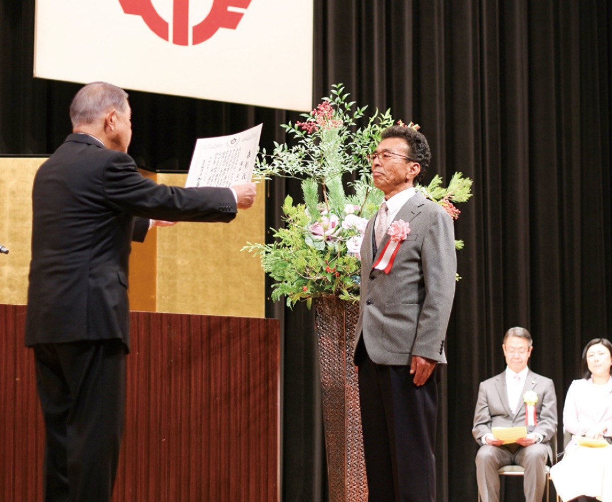 表彰は3部門で計10人が対象。長年消防団員を務めた瀧本正一さんらに表彰状が手渡された。