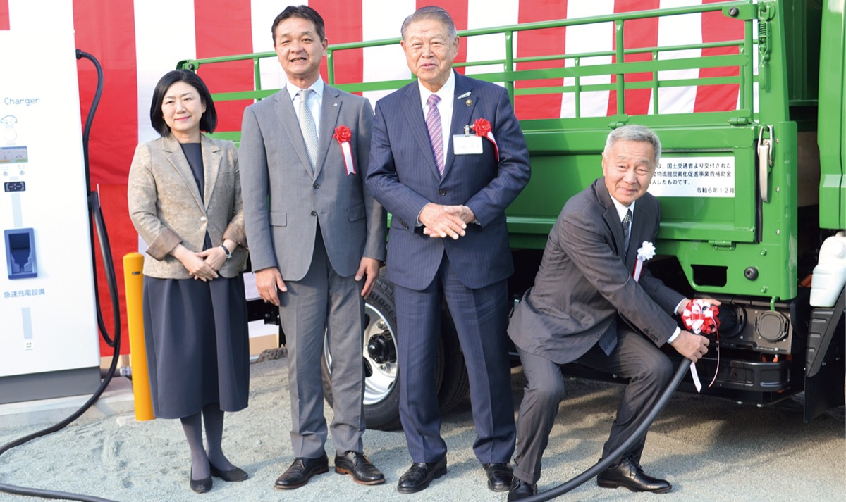 式典で加藤誠一社長は「多方面からの協力に感謝します。少しでも地域のお役に立てれば」と挨拶。加藤修平市長は「脱炭素だけでなく、災害対応も見据えた素晴らしい取り組み」、山神裕町長は「今後も住民、民間事業者と協力して脱炭素への取り組みを強化したい」と話した。