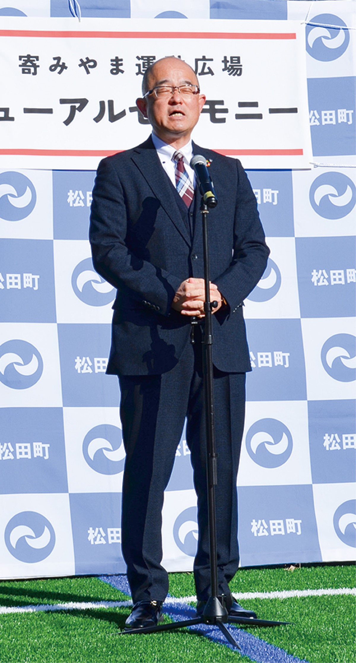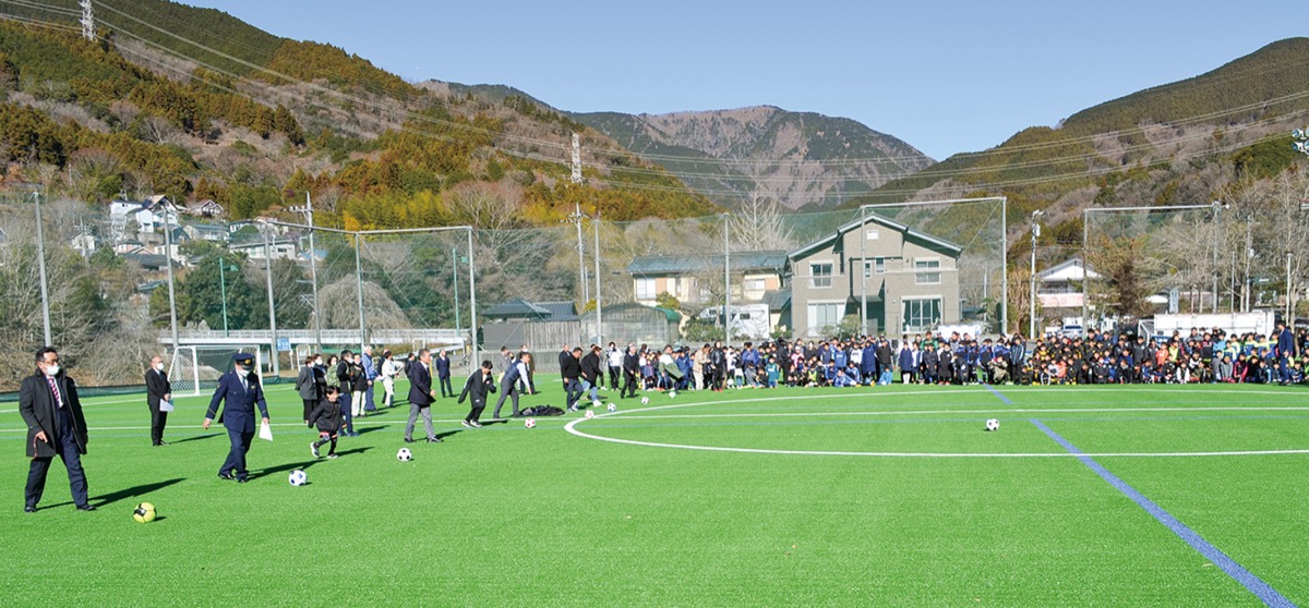 松田町は寄みやま運動広場(寄3111)を新しく人工芝に張替え、1月11日にリニューアルセレモニーを開催した。
