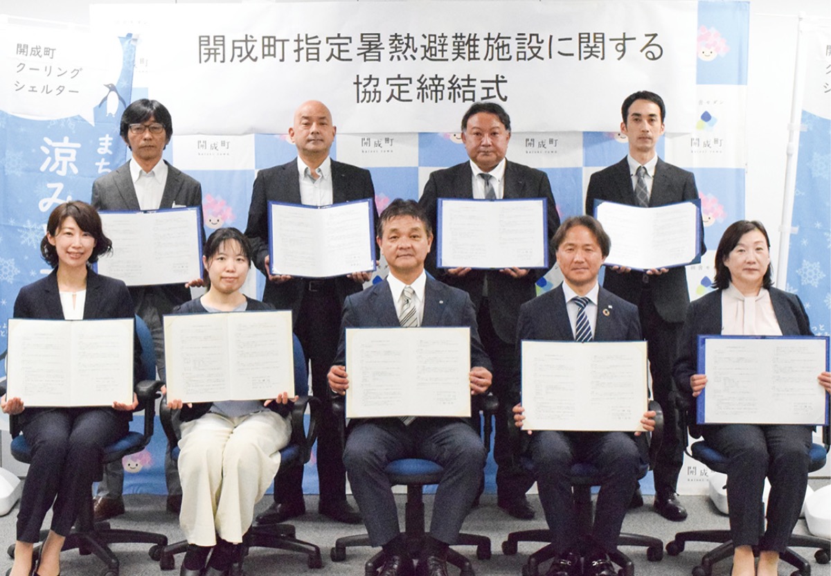 夏の熱中症対策に開成町は4月24日、町内の民間事業者10社と「開成町指定暑熱避難施設に関する協定」を締結した。