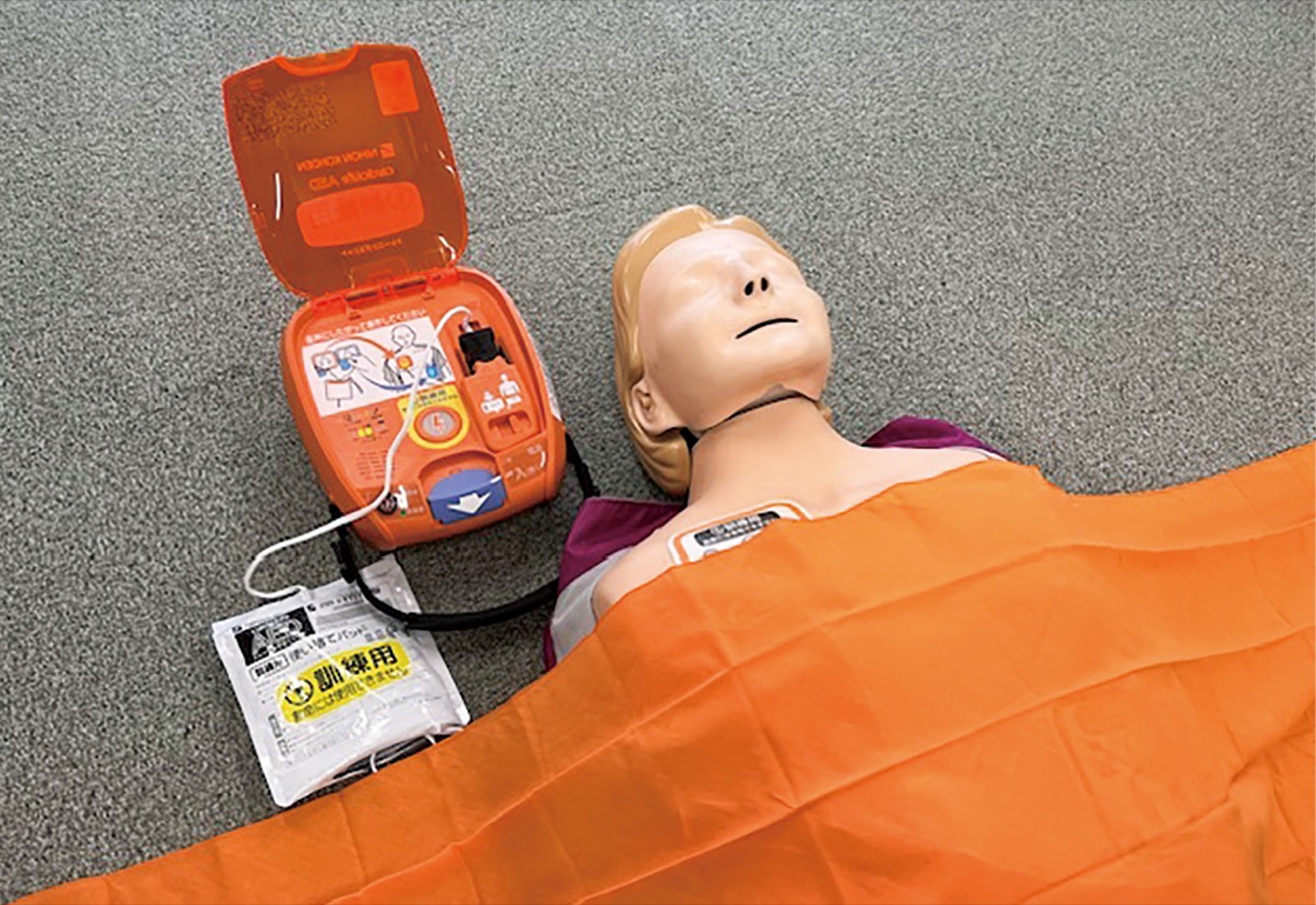 AEDの使用時は胸部を露出することになるため、三角巾で素肌を隠すことでプライバシーを保護する意味合いがある。