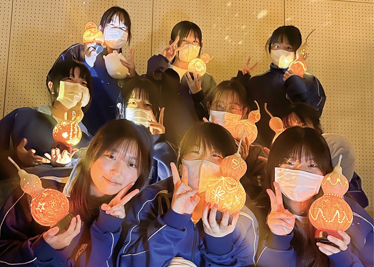 大井町立湘光中学校(野地崇校長)の3年生約160人がこのほど町のシンボル「ひょうたん」を使ったランプを制作した。