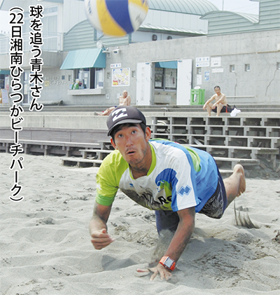 真鶴町のビーチバレー選手・青木晋平さん(30)(フリー)が、今月5日まで宮崎県都城市で開催された「東日本大震災復興支援大会JBVツアー第3戦ファイテンビーチバレー霧島酒造オープン」(日本ビーチバレー連盟主催)に出場、優勝した。青木さんは今年2月、北京五輪の出場経験もある朝日健太郎さん(フォーバル)とペアを結成、強化指定選手にも選ばれ、上海、お台場、名古屋、チェコなど国内外の大会を転戦している。チームではライトを担当、ディフェンスではレシーバーとして活躍する。今後は米国ロスアンゼルスでの合宿を経て、7月にカナダで開催されるワールドツアーに出場する予定。取材に対し「自分の身長は185㌢でプロ選手の中では小柄だが、親譲りの身体能力で他の人ができないプレーを意識している。いつかは地元真鶴でもプレーしたい」とコメントした。