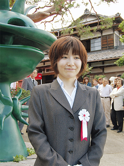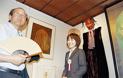 真鶴・お林展望公園に向かう道の途中に和風旅館を改築した「真鶴アートミュージアム」がオープンし、福田晃子さん(30)が館主に就任した。「高校生の頃から美術館で働くのが夢だった」という福田さんは大学在学中から学芸員を目指したが、難関の前に夢は叶わなかった。博物館での非常勤勤務などを経て、今年から人間国宝美術館(湯河原町中央)で勤務。当初ミュージアムは同美術館が運営する予定だったが、同美術館などからの貸し出し作品と福田さん所有の作品と合わせて展示し、福田さん自ら館主となる形でオープンが決定した。館内はほぼ旅館当時の間取りで、こぢんまりした部屋にはルオーやガレ、ルノワールなど巨匠の作品が並ぶ。離れの和室も改造し、太陽の塔のブロンズ像など岡本太郎関連の15品を集めた「岡本太郎の間」として再生させた。座布団でくつろぎながら芸術を楽しめる空間になっている。
