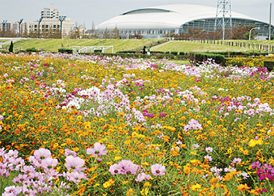 相模川(平塚市)の「馬入・光と風の花づつみ」のコスモスが今、見頃を迎えている。約2万平方メートルに広がる花畑は、先月の台風15号の影響を受けたものの、赤・白・ピンクのコスモスポニーと、黄・橙のキバナコスモスの約50万本が色とりどりに花を咲かせている。同花畑では、今月22日(土)、「馬入花畑の会」主催のコスモス摘み取りイベントが実施される。時間は10時から15時までで(雨天中止)参加無料。はさみや新聞紙など持参。問合せは平塚市みどり公園・水辺課水辺・海浜担当【電話】0463・21・9852まで。