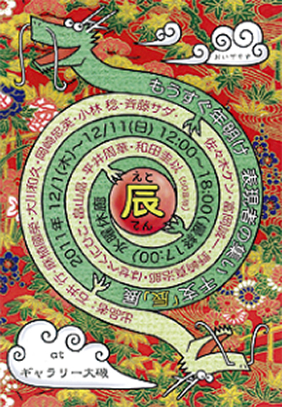 ギャラリー大磯で「もうすぐ年明け 表現者の集い〜干支『辰』展」を12月11日(日)まで開催している。漫画家はせべくにひこ氏ら13人の作家が「辰」を表した版画・陶芸・絵画・1コマ漫画・イラストなどを展示。昼12時〜午後6時(最終日は午後5時まで)。入場無料。12月7日(水)休廊。場所は国道1号線沿い大磯中学校そば。問い合わせは同ギャラリー【電話】0463(61)7338まで。
