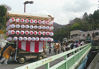箱根町宮城野の諏訪神社で15日まで例祭が行われ、宮城野囃子保存会の子供たちを乗せた山車が、軽やかな音色を響かせながら地域を巡った。年に1度だけ登場するこの山車は大正天皇即位を記念して当時の宮城野村民が作ったとされ、木製の車輪をタイヤに替えるなどして受け継がれている。